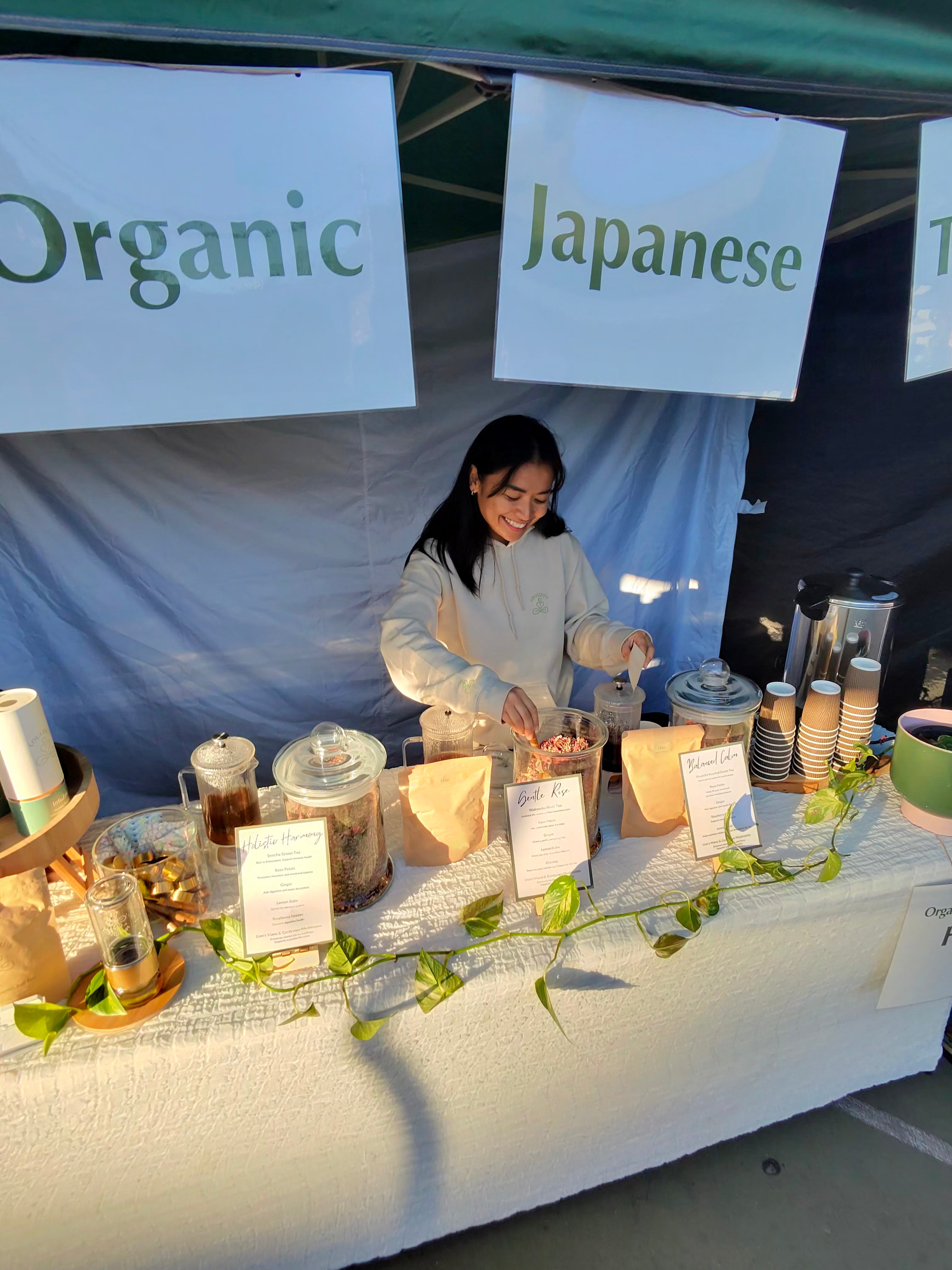 Loulou’s Tea was founded by Maria Ishikawa aka Loulou, an herbalist and Breath work & meditation facilitator originally from Japan. Maria’s journey with tea began at a young age, inspired by the rich tea culture of her homeland. After experiencing stress, depression, and gut issues, she turned to the ancient wisdom of herbal medicine and tea for healing. This transformative experience led her to create Loulou’s Tea, with a vision to share the profound benefits of tea and holistic health with others.
